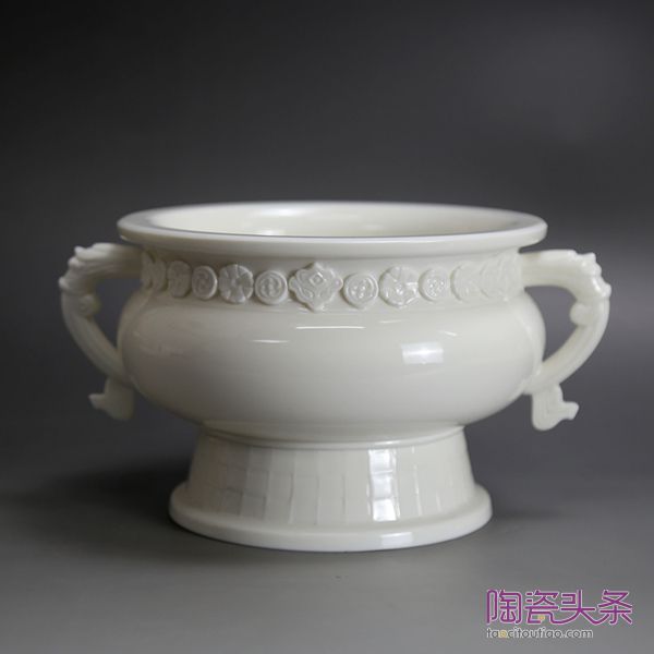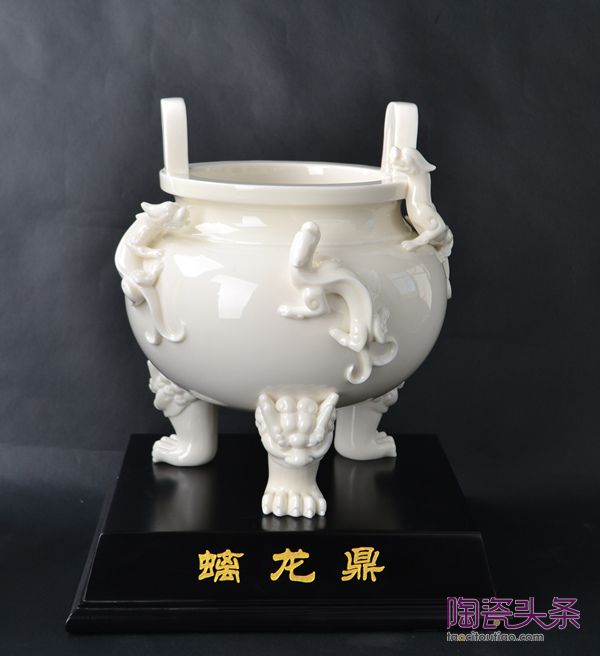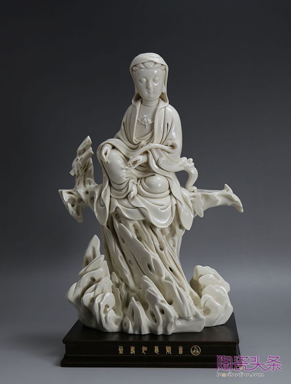 他選送了11件作品到北京參加拍賣,最終成交了9件。其中《魑龍鼎》拍出2.8萬元,含傭金3.22萬元;《坐巖持經(jīng)觀音》拍出5萬元,含傭金5.98萬元;《渡海觀音》拍出6.5萬元,含傭金7.475萬元;被中國美術館收藏的《文殊茗薩、普賢菩薩》更是拍出18萬元的高價,含傭金20.7萬元。不難看出,德化現(xiàn)代瓷塑作品的價值是被藏圈認可的。