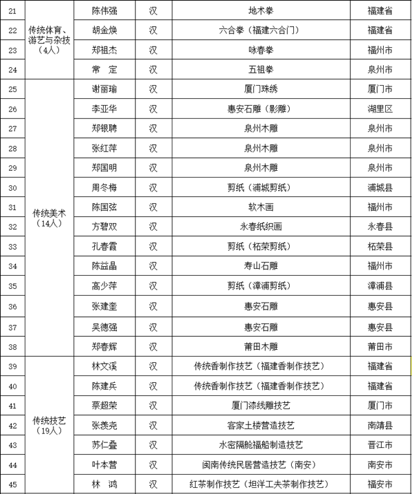 福建省第六批國家級非物質(zhì)文化遺產(chǎn)代表性傳承人推薦申報名單