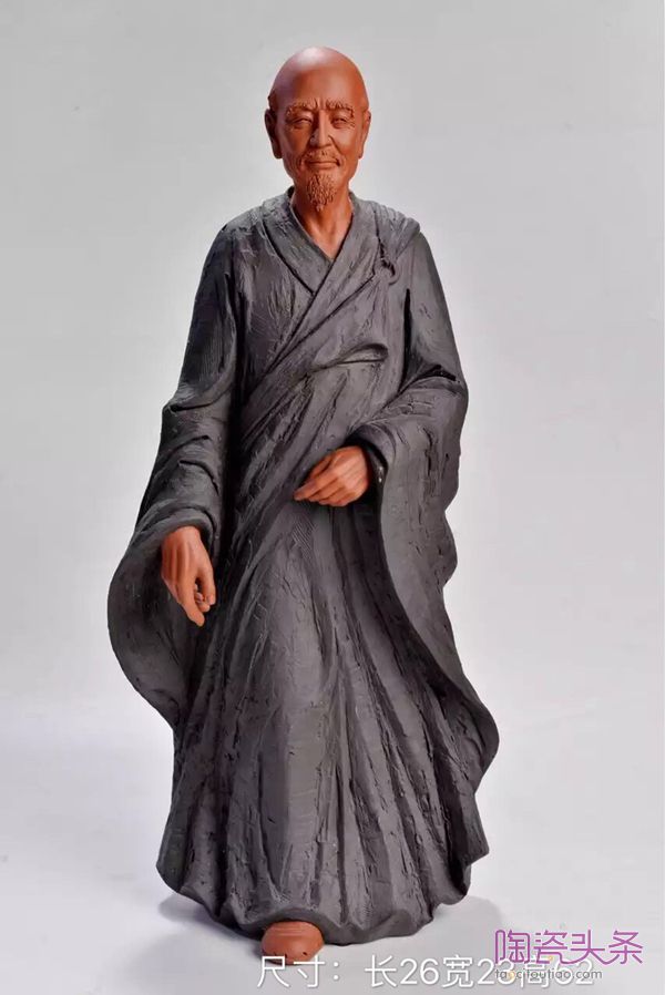 張明貴紫砂材質(zhì)的弘一法師作品,在圈內(nèi)已有一定的小名氣。他做的弘一法師應(yīng)用傳統(tǒng)精雕細(xì)刻的雕塑技藝,搭配現(xiàn)代簡約抽象的創(chuàng)作技法,使得作品粗中有細(xì),彰顯出德化傳統(tǒng)技藝的魅力,又不失時代審美語言。