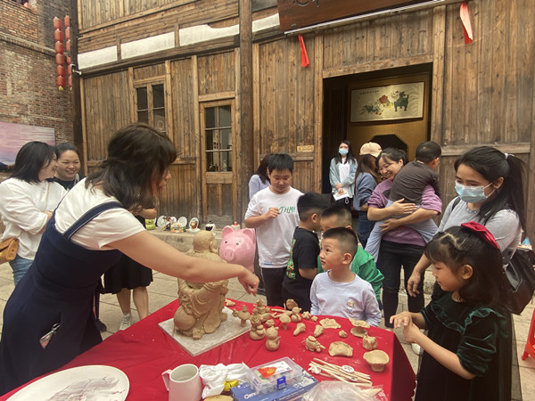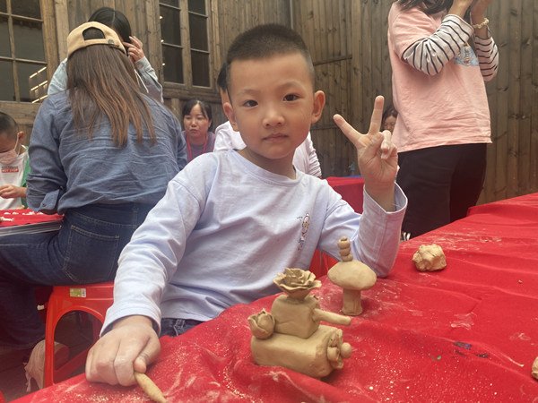 在捏塑DIY活動(dòng)上,鄭金星老師化身成為小朋友們的陶藝捏塑老師,帶領(lǐng)小朋友們進(jìn)行泥塑DIY創(chuàng)作,激發(fā)他們的創(chuàng)作潛能。小朋友們圍桌而坐,各自發(fā)揮想象力,天馬行空地捏塑出坦克、犀牛、蘑菇、雪人等多種多樣的泥塑作品,感受瓷都德化的文化魅力。