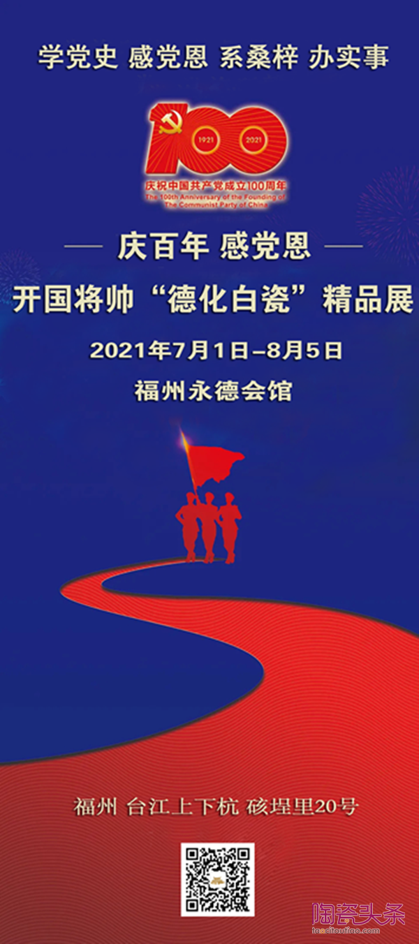 2021年7月1日-8月5日福州永德會館將展出中國工藝美術(shù)大師賴禮同親手打造的毛主席、十大元帥和十大開國大將陶瓷作品,獻(xiàn)禮中國共產(chǎn)黨百年華誕。