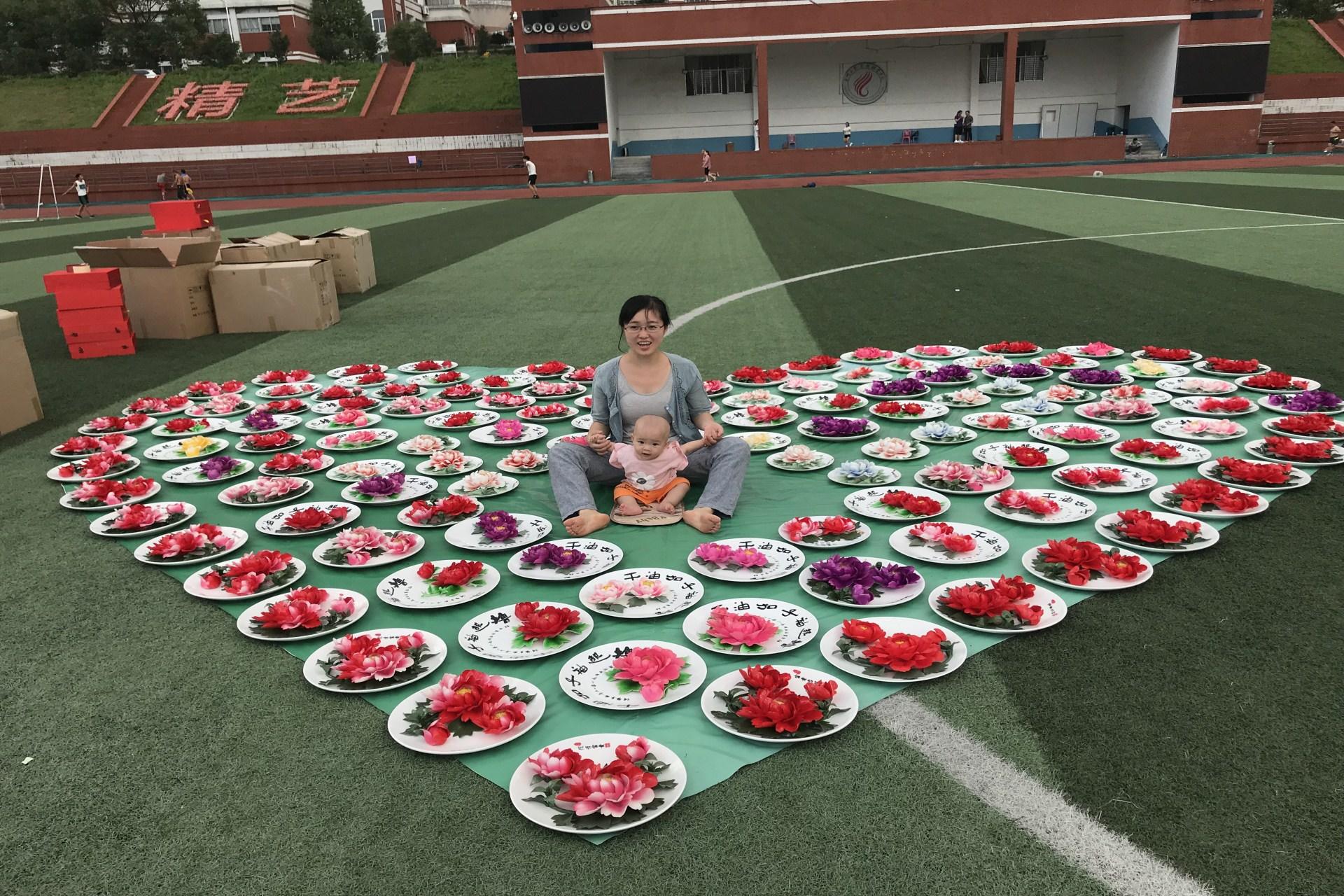 活動開始前一天,為了讓活動參與者進一步感受德化陶瓷文化的趣味性,主辦方在徒步之旅的起點——泉州工藝美術職業(yè)學院的操場上,用520個瓷花盤和1314把白瓷壺分別擺成“瓷I?”“一生”四字,象征一生一世,一生幸壺(福)。在活動準備現(xiàn)場更有100名徒步協(xié)會人員的積極參與,抖音網紅穆小申、情侶和親子的甜心助力,為活動增添了一抹粉紅色的色彩,傳達出濃濃的“愛”意。