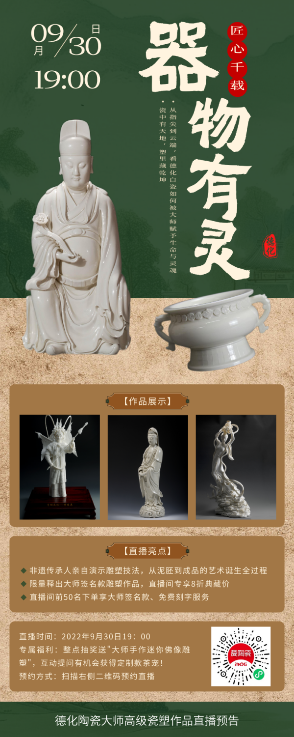 「匠心千載·物有靈」德化陶瓷大師高級(jí)瓷塑作品直播預(yù)告