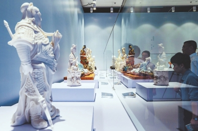 24日,“白瓷之光——德化陶瓷藝術(shù)征集作品展”在福建省海峽民間藝術(shù)館開展。本次展覽由福建省民間文藝家協(xié)會、福建省海峽民間藝術(shù)館主辦,將延續(xù)到29日。這次征集的57位藝術(shù)家的作品造型風(fēng)格各異,其中既有釉面溫潤、晶瑩如玉的精美白瓷,還有將傳統(tǒng)陶瓷雕塑與加彩技藝結(jié)合創(chuàng)新的瓷塑作品,充分彰顯了德化陶瓷文化的深厚底蘊,吸引了不少游客駐足。 2019-07-27“德化白瓷”“德化玉瓷”“德化窯瓷器”成功注冊地理標(biāo)志證明商標(biāo)