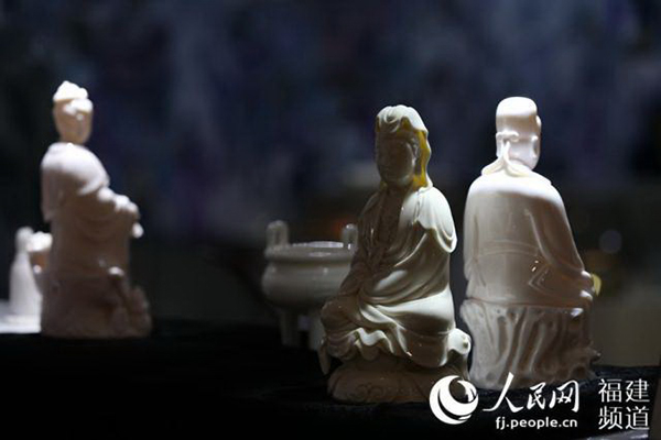 24日,“白瓷之光——德化陶瓷藝術(shù)征集作品展”在福建省海峽民間藝術(shù)館開展。本次展覽由福建省民間文藝家協(xié)會、福建省海峽民間藝術(shù)館主辦,將延續(xù)到29日。這次征集的57位藝術(shù)家的作品造型風(fēng)格各異,其中既有釉面溫潤、晶瑩如玉的精美白瓷,還有將傳統(tǒng)陶瓷雕塑與加彩技藝結(jié)合創(chuàng)新的瓷塑作品,充分彰顯了德化陶瓷文化的深厚底蘊(yùn),吸引了不少游客駐足。 2019-07-27“德化白瓷”“德化玉瓷”“德化窯瓷器”成功注冊地理標(biāo)志證明商標(biāo)
