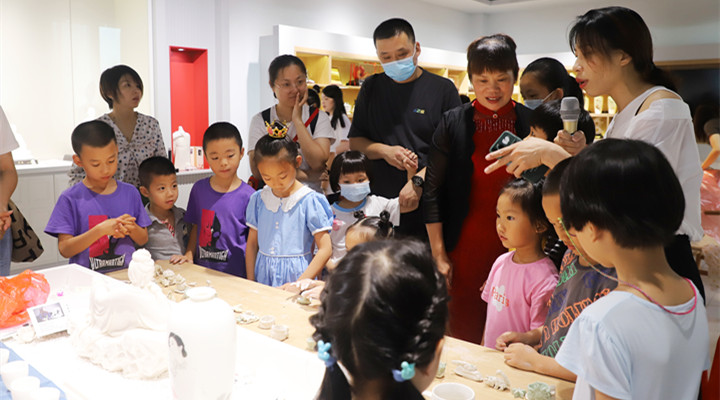 8月4日,德化瓷燒制技藝——綜合材料藝術(shù)作品展在三班鎮(zhèn)洞上陶藝村“月記美術(shù)館”開(kāi)展。此次展覽以“紀(jì)念改革開(kāi)放四十周年,傳承德化瓷燒制技藝”為主題,展示了畢業(yè)于中央美術(shù)學(xué)院的藝術(shù)家林文雄和張千帆一年來(lái)在洞上陶藝村的藝術(shù)創(chuàng)作。他們以自己獨(dú)特的藝術(shù)創(chuàng)新理念,令德化瓷和其他綜合材料碰撞出絢爛火花。如張千帆的《金箍棒》系列、林文雄的《土豆》《蝴蝶》等,作品中的奇思妙想以及現(xiàn)代的藝術(shù)表現(xiàn)手法令參觀者感觸良多。 2019-08-11海峽兩岸大學(xué)生設(shè)計(jì)工作坊五洲陶瓷專場(chǎng)啟動(dòng)
