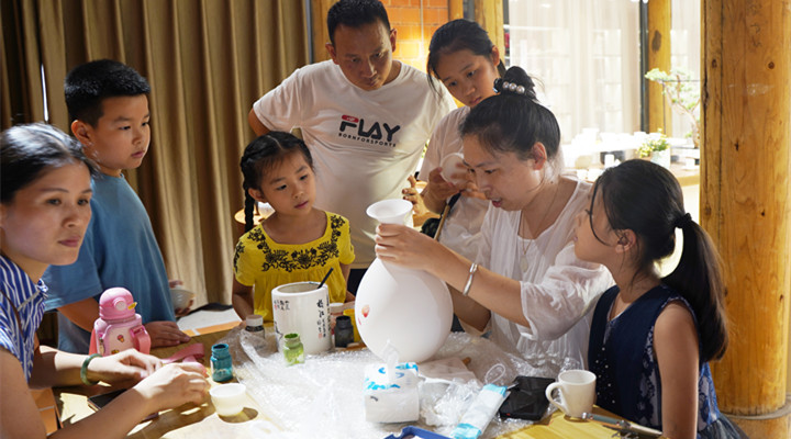8月4日,德化瓷燒制技藝——綜合材料藝術(shù)作品展在三班鎮(zhèn)洞上陶藝村“月記美術(shù)館”開展。此次展覽以“紀(jì)念改革開放四十周年,傳承德化瓷燒制技藝”為主題,展示了畢業(yè)于中央美術(shù)學(xué)院的藝術(shù)家林文雄和張千帆一年來(lái)在洞上陶藝村的藝術(shù)創(chuàng)作。他們以自己獨(dú)特的藝術(shù)創(chuàng)新理念,令德化瓷和其他綜合材料碰撞出絢爛火花。如張千帆的《金箍棒》系列、林文雄的《土豆》《蝴蝶》等,作品中的奇思妙想以及現(xiàn)代的藝術(shù)表現(xiàn)手法令參觀者感觸良多。 2019-08-11海峽兩岸大學(xué)生設(shè)計(jì)工作坊五洲陶瓷專場(chǎng)啟動(dòng)