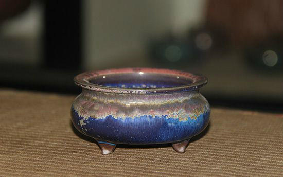 三、其炭窯燒制的爐鈞釉色,與宋代官窯的鈞瓷釉色相比,可以說有過之而無不及。