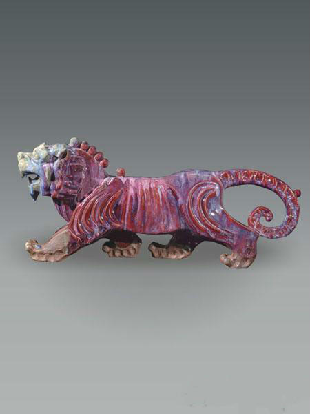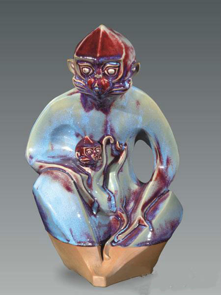 在長期的鈞瓷創(chuàng)作中,賀文奇創(chuàng)造性地將現(xiàn)代陶藝?yán)砟钜氘?dāng)代中國鈞窯藝術(shù),創(chuàng)作出了許多極具時代色彩和藝術(shù)創(chuàng)造力的鈞瓷。在他的工作室里,看不到鈞瓷的尊、瓶、鼎、盤等傳統(tǒng)作品,擺放的是他宣傳環(huán)保的獲獎系列作品《水·小山村》。有造型獨(dú)特的十八羅漢,有栩栩如生、嬉笑打鬧的虎娃,也有用劃船、舉重、體操、射箭等運(yùn)動項(xiàng)目做成壺嘴、壺把的奧運(yùn)壺……