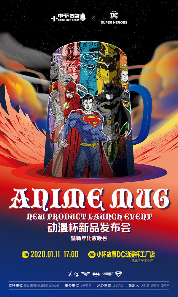 小杯故事經(jīng)過幾個月的研發(fā),誕生了DC SUPERHEROES商標(biāo)與小杯故事的合作紀(jì)念款DC正義聯(lián)盟3D陶瓷杯,小杯故事的馬克杯巧妙融入了DC動漫人物元素,擁有蝙蝠俠和超人等形象的設(shè)計讓陶瓷制品更富內(nèi)涵。而繼與DC動漫合作之后,小杯故事再攜手熊仔動漫聯(lián)袂打造了熊仔系列版權(quán)馬克杯。在文化傳播上,DC英雄元素、熊仔元素主題陶瓷杯,承載了漫畫角色的意志,是陪伴粉絲的一種精神寄托,同時也在無形中輸出了德化陶瓷藝術(shù)的文化亮點,有效塑造和推廣展示了世界瓷都——德化的生產(chǎn)力、創(chuàng)造力和高質(zhì)量的城市形象。為此,值此2020新年到來之際小杯故事特為粉絲們舉辦2020DC動漫杯新品發(fā)布會,以期帶來一場全新的視覺體驗。